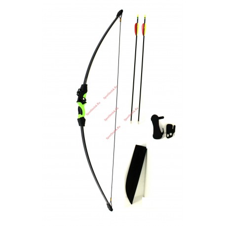 Классический лук для начинающих лучников. Рукоять сделана из прочного твердого пластика. Плечи сделаны из текстолита, что обеспечивает равномерную натяжку лука. Лук выкрашен в черный, на рукояти имеются прорезиненные вставки, выкрашенные в салатовый цвет. Особенность данной модели является то, что лук может использовать как правша, так и левша.
